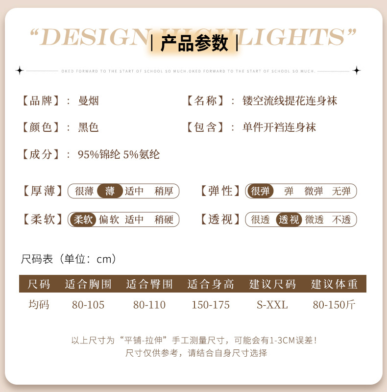 成为第一个“曼烟情趣内衣性感中袖开档交叉花纹镂空连体网衣渔网连身网袜7952” 的评价者
