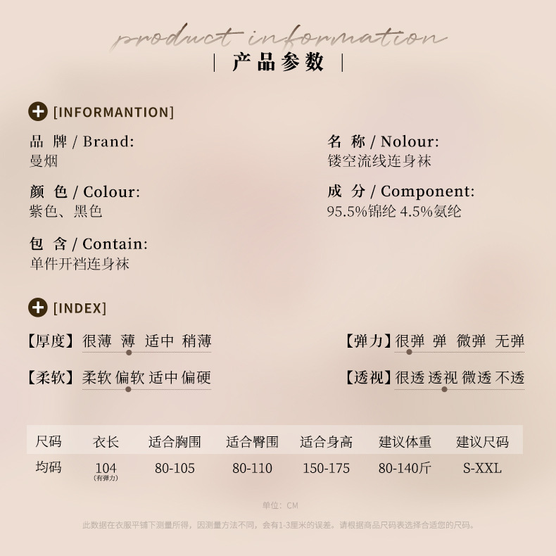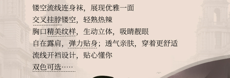 成为第一个“曼烟情趣内衣性感修身透视镂空流线挂脖美背开档连身网袜7418” 的评价者