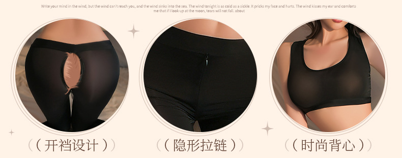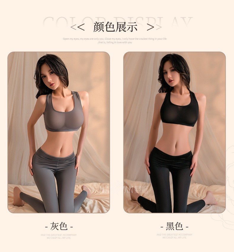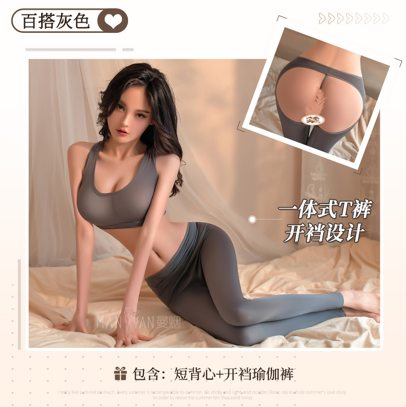 曼烟情趣内衣性感冰丝透视拉链镂空漏臀瑜伽服套装情趣丝袜8940等