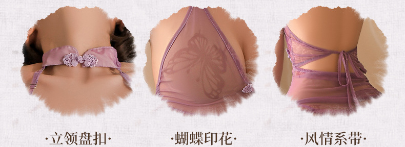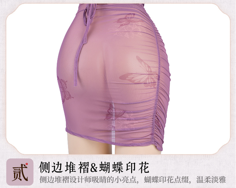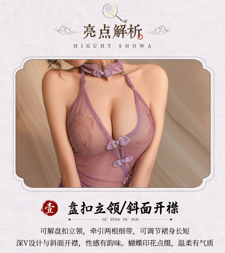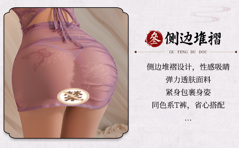 曼烟情趣内衣性感古风蝶恋花透视旗袍包臀绑带制服套装9175