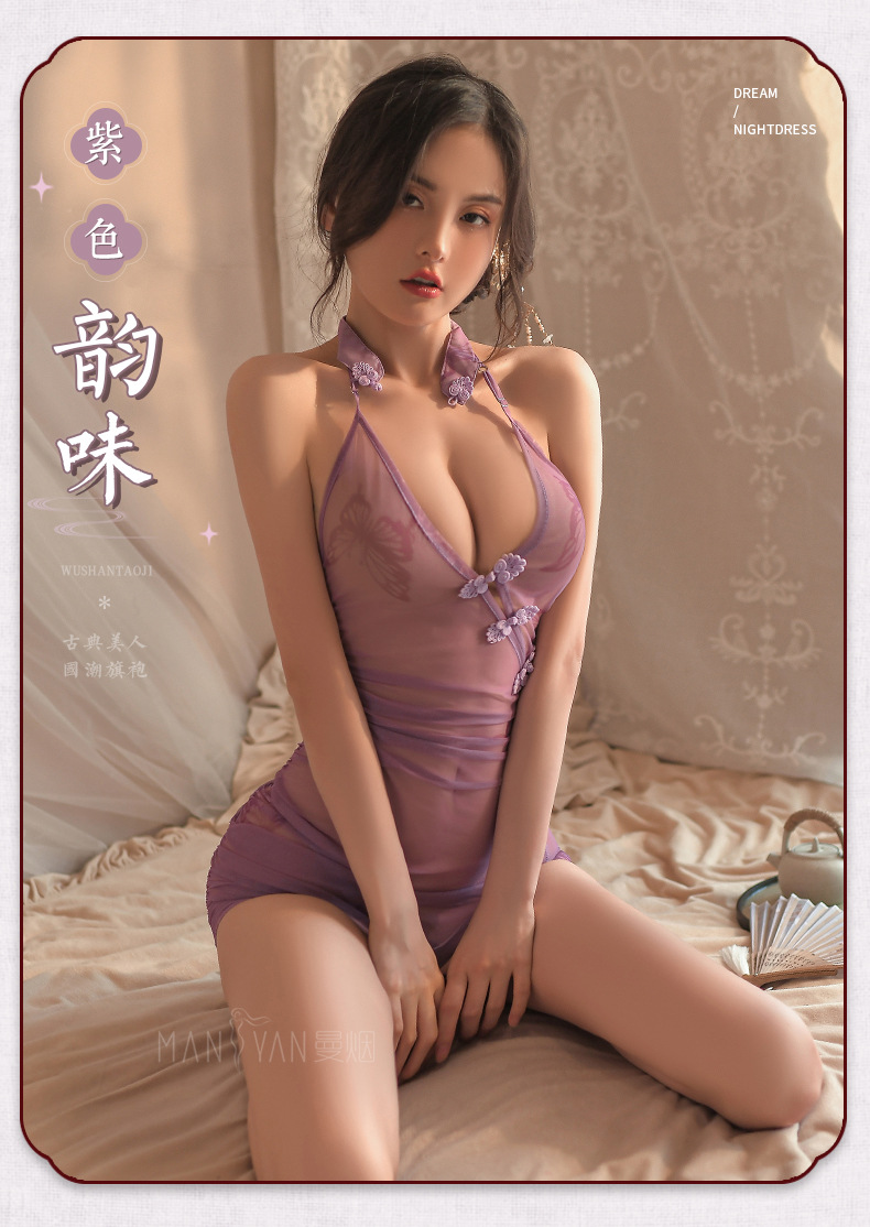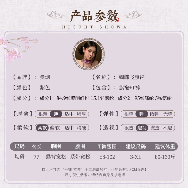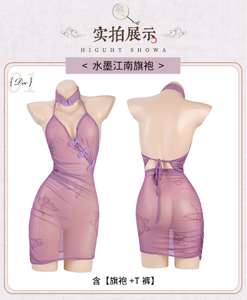 曼烟情趣内衣性感古风蝶恋花透视旗袍包臀绑带制服套装9175 数量