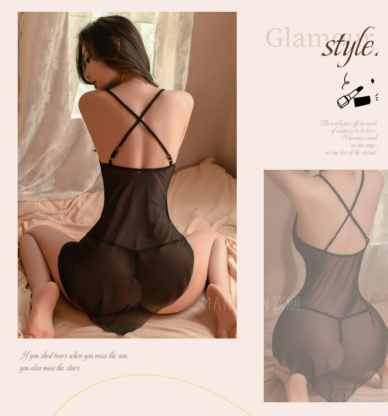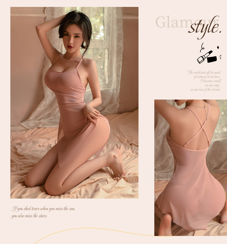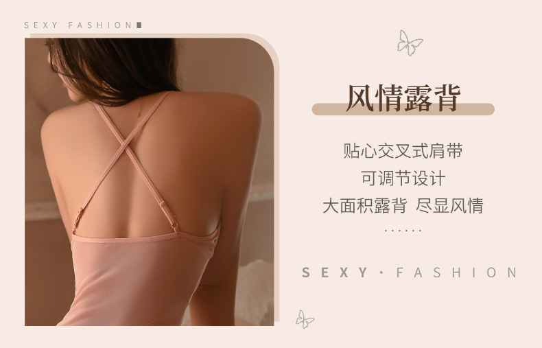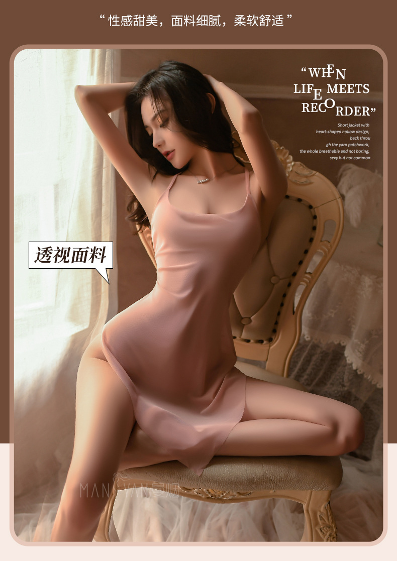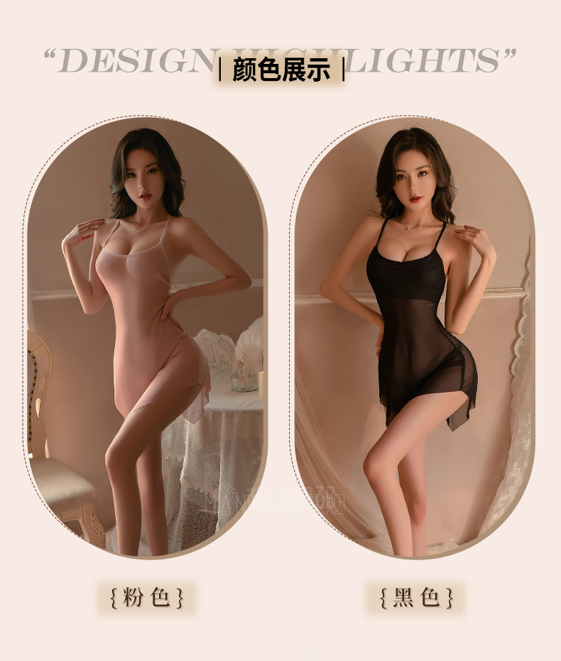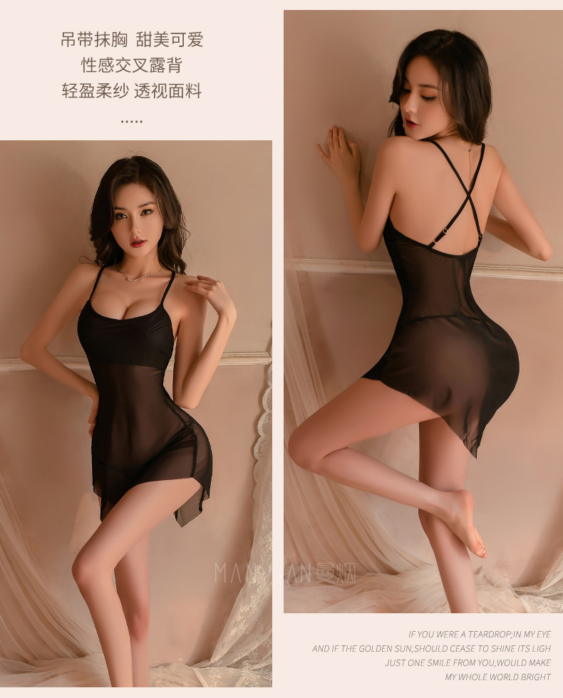 曼烟情趣内衣性感吊带斜切裙摆透视睡裙短裙制服套装9142