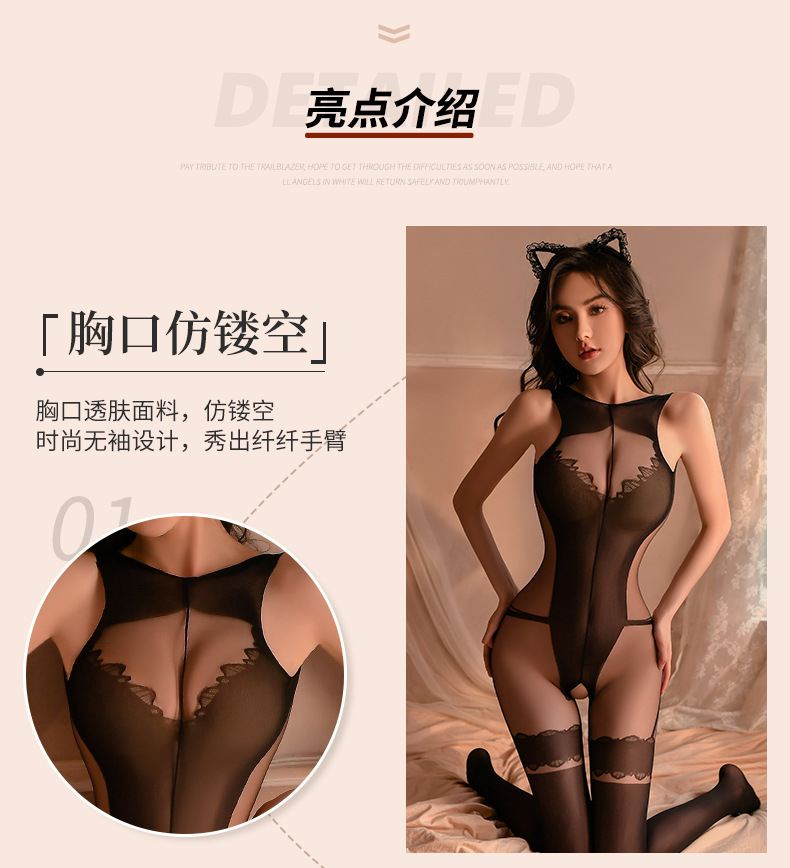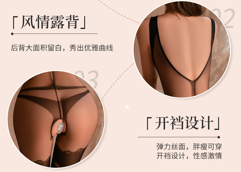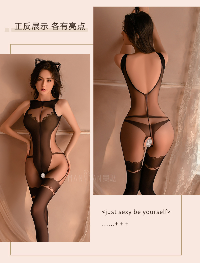 曼烟情趣内衣性感吊带透视开裆旗袍式连身袜情趣丝袜一件代发9322