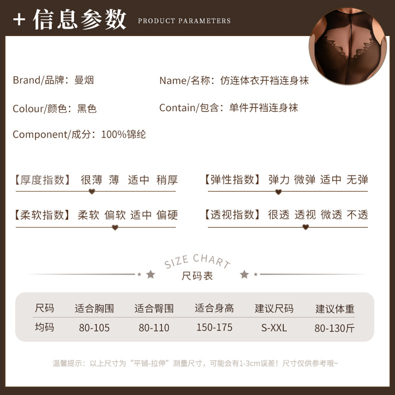 成为第一个“曼烟情趣内衣性感吊带透视开裆旗袍式连身袜情趣丝袜一件代发9322” 的评价者