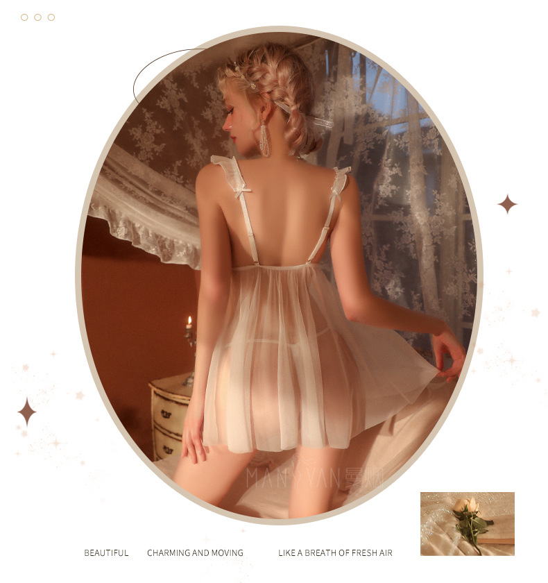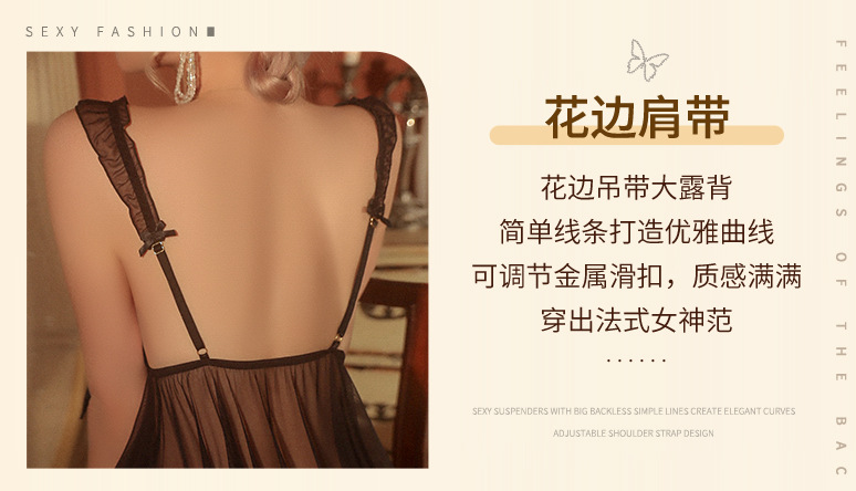 曼烟情趣内衣性感吊带透视胸前镂空短裙睡裙制服套装一件代发8710
