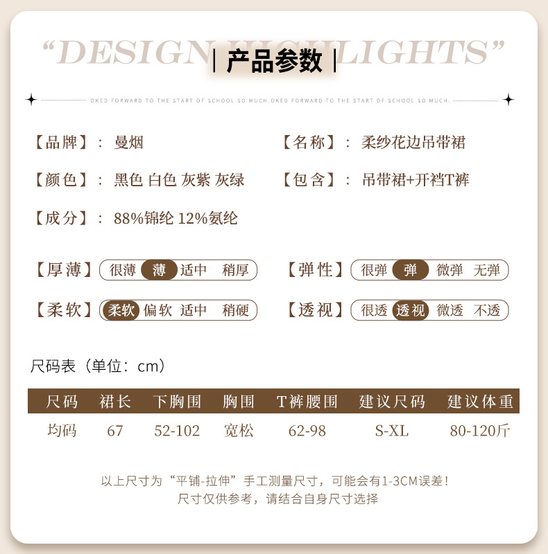 成为第一个“曼烟情趣内衣性感吊带透视胸前镂空短裙睡裙制服套装一件代发8710” 的评价者