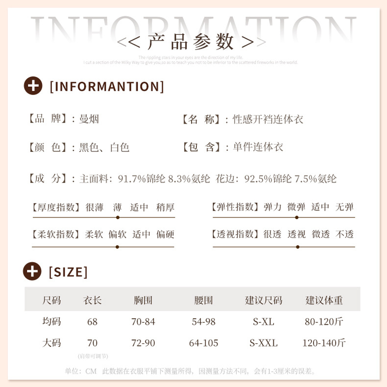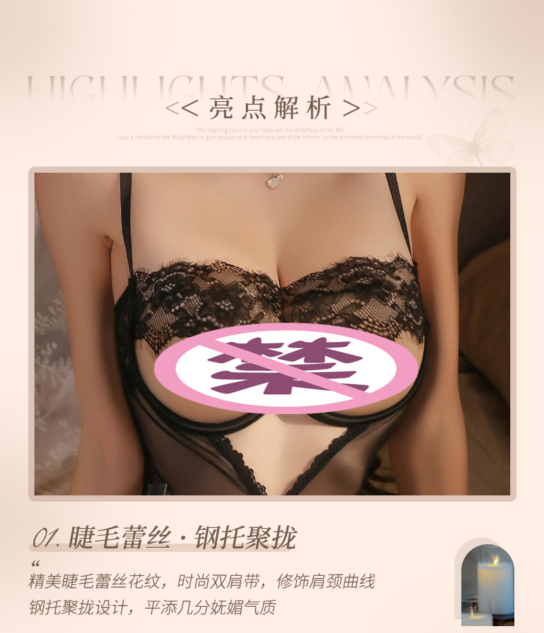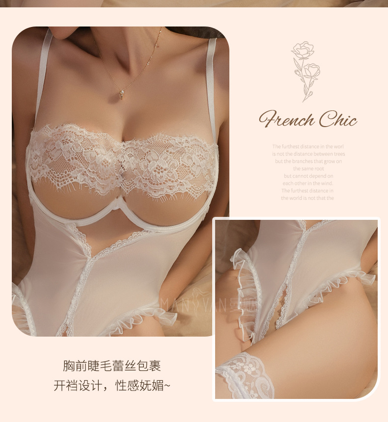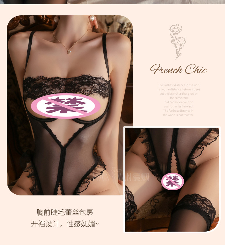 成为第一个“曼烟情趣内衣性感吊带镂空美背花边钢托聚拢开档连体睡衣1826” 的评价者