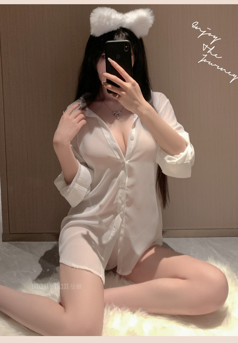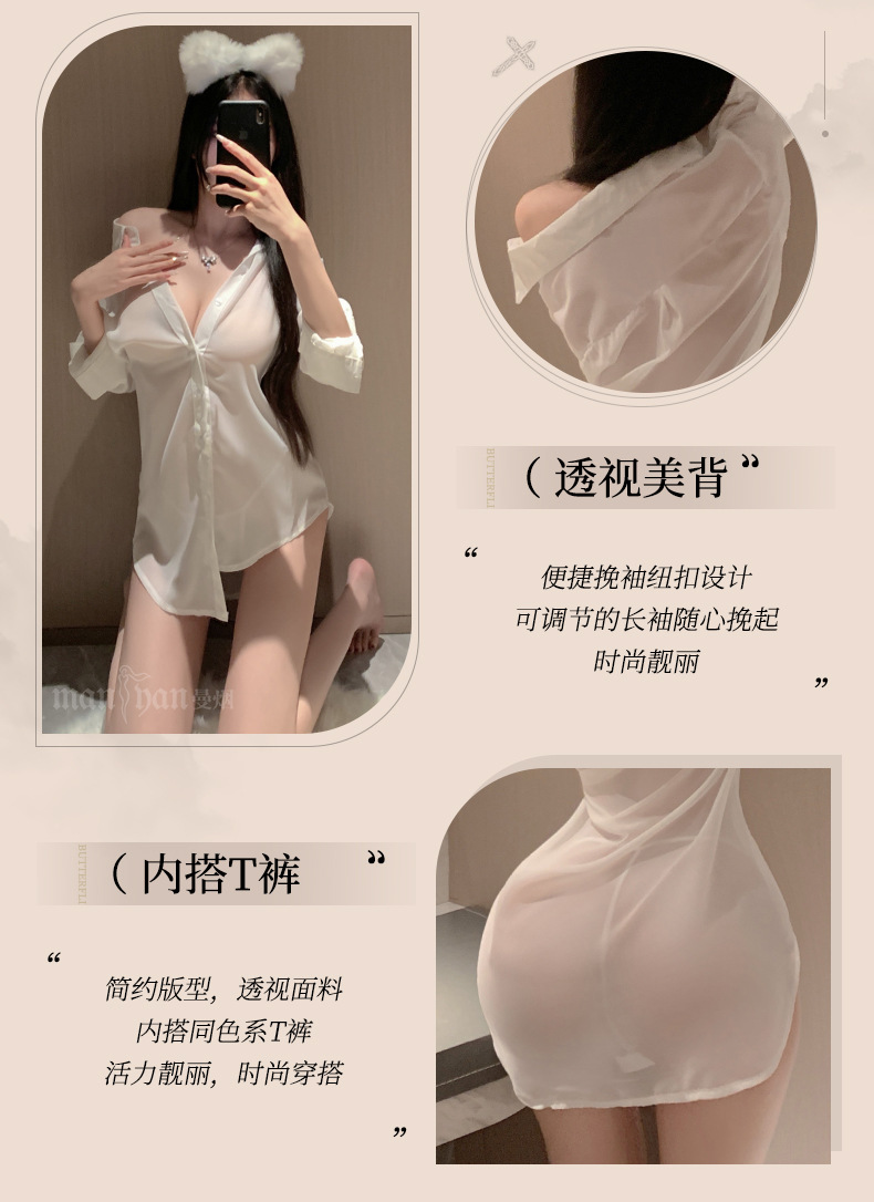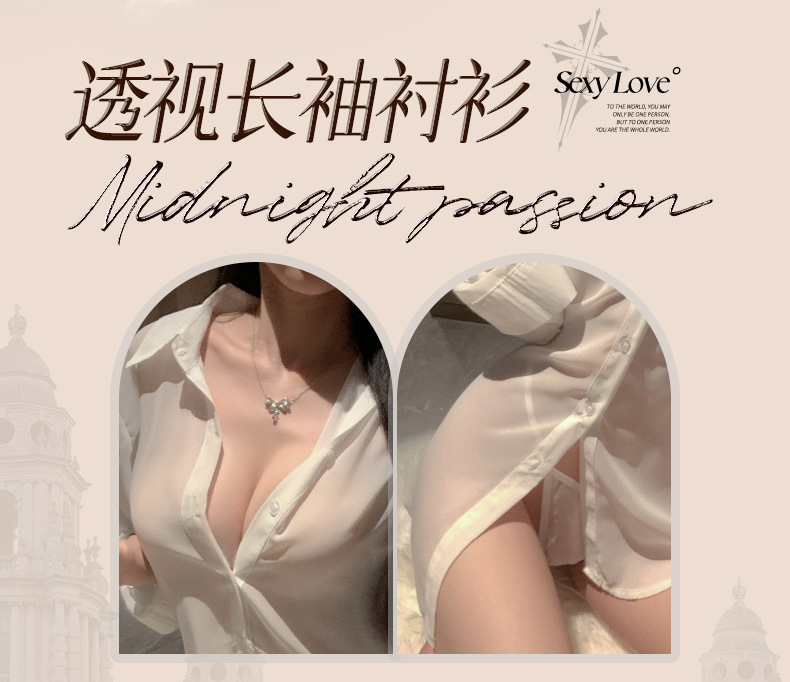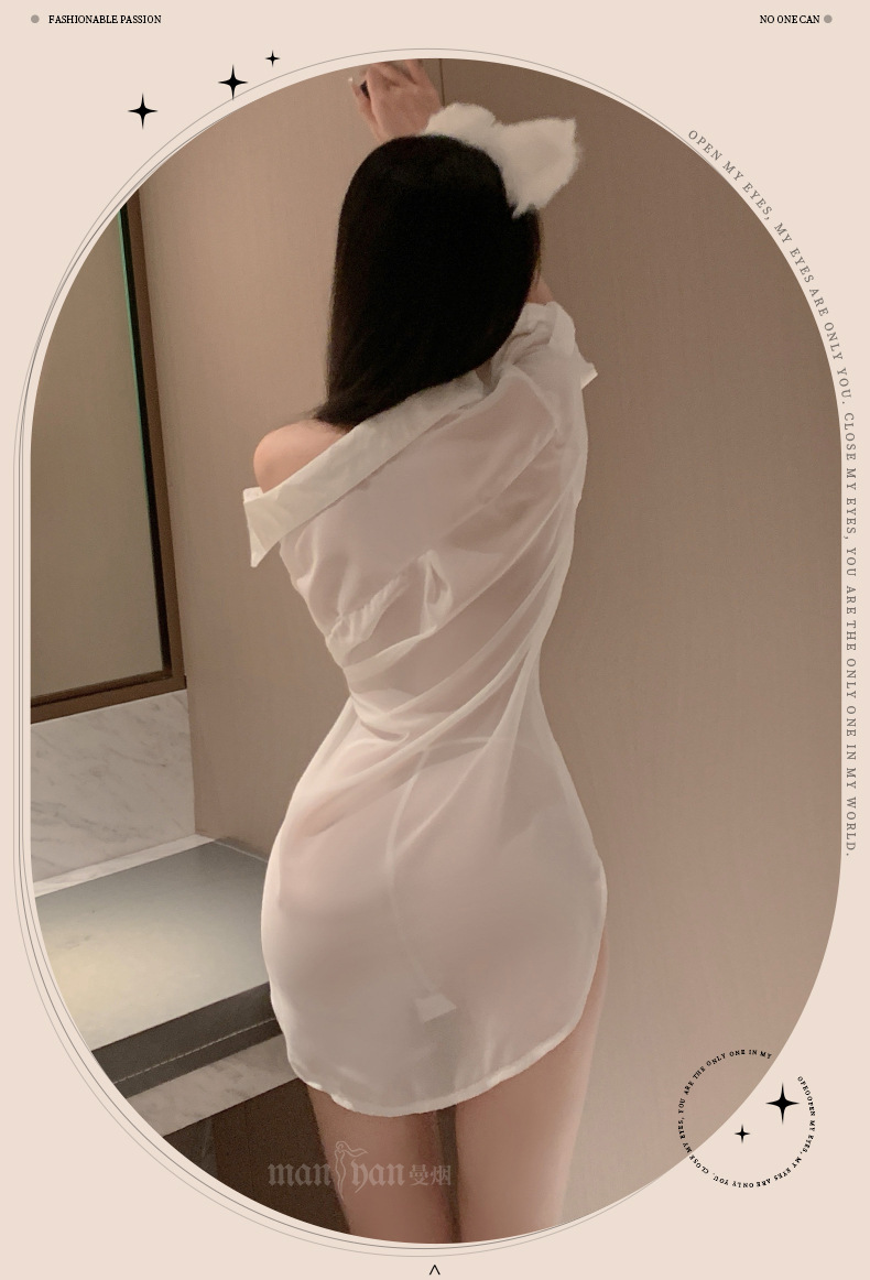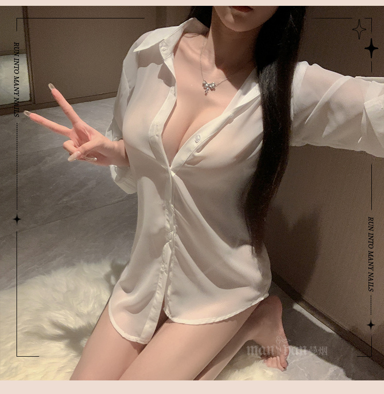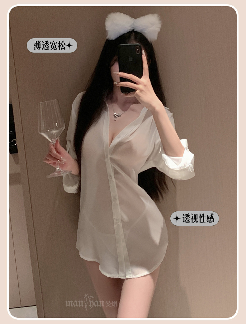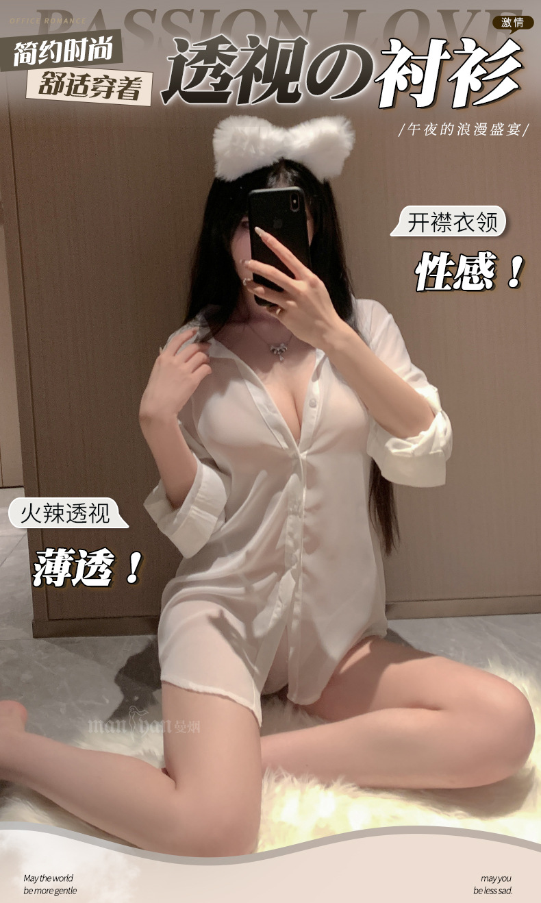 成为第一个“曼烟情趣内衣性感开襟透视长袖男友衬衫短裙睡衣制服套装代发1654” 的评价者