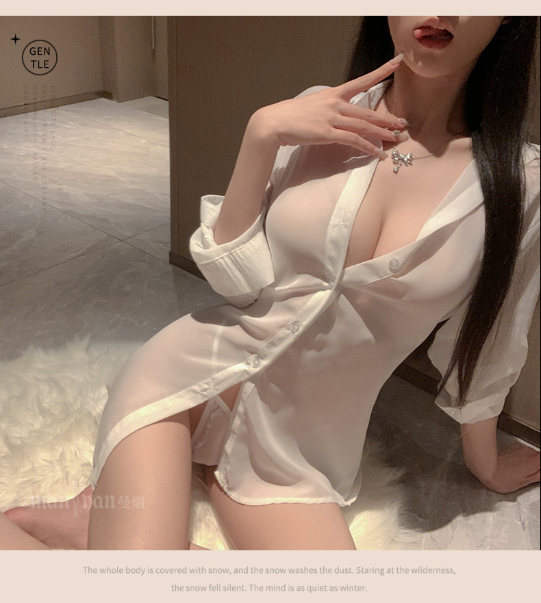 曼烟情趣内衣性感开襟透视长袖男友衬衫短裙睡衣制服套装代发1654