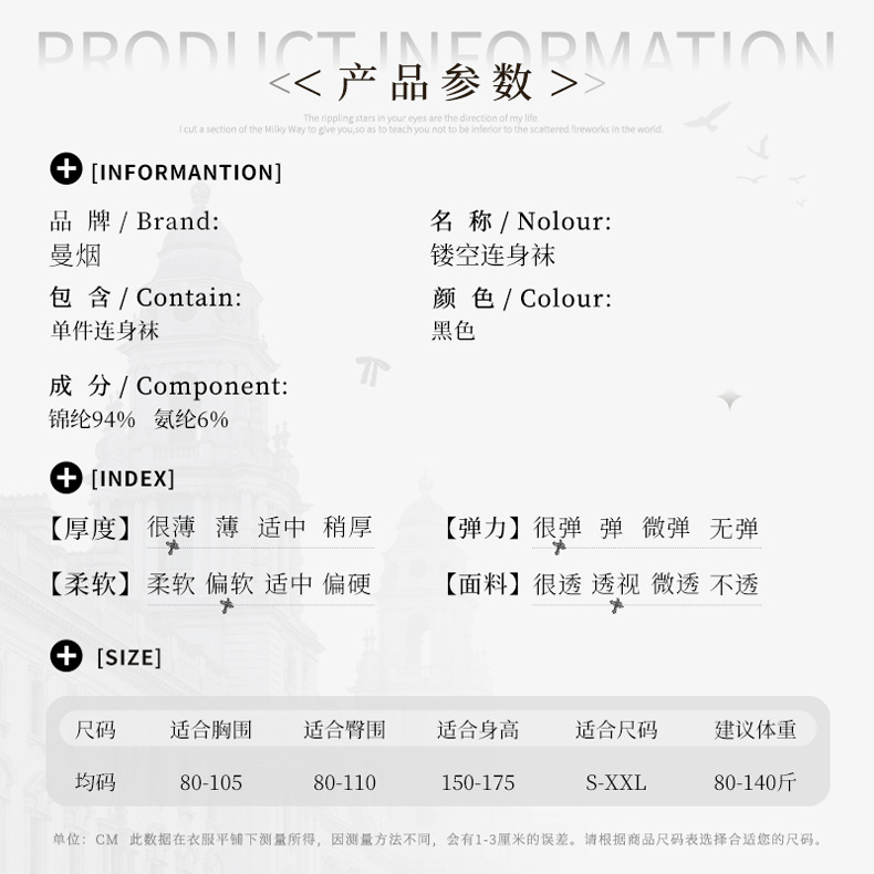 成为第一个“曼烟情趣内衣性感挂脖吊带连身袜镂空透视连体网衣制服丝袜700033” 的评价者