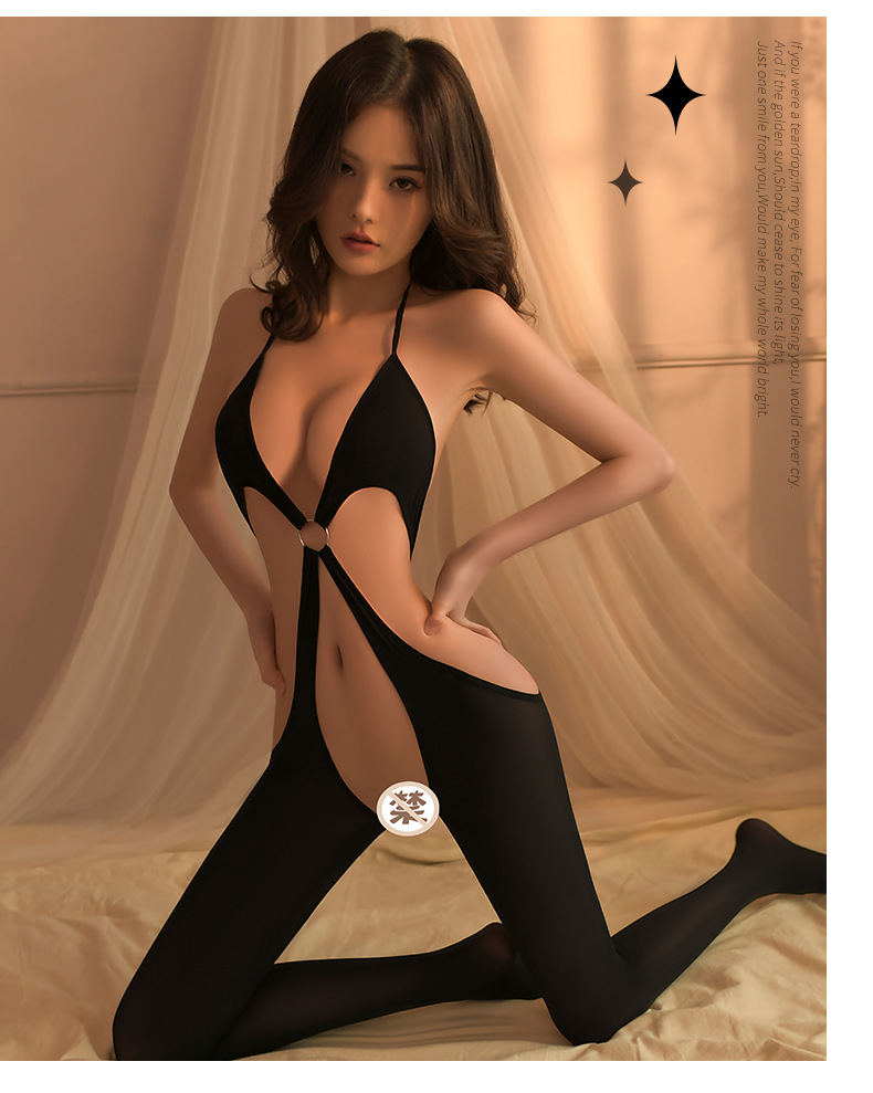 曼烟情趣内衣性感挂脖吊带露背露乳开档情趣连体衣制服套装1635