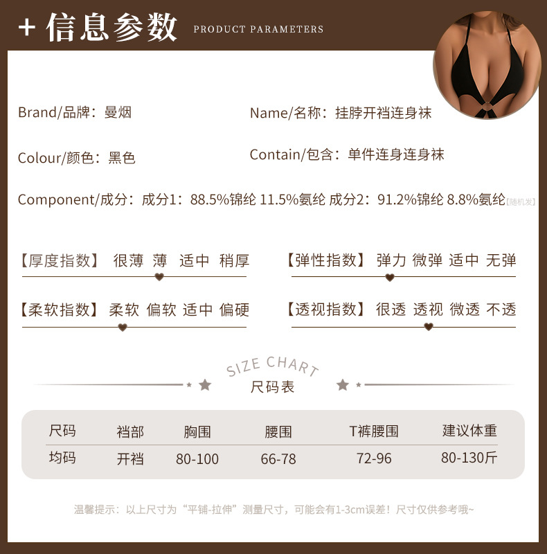 成为第一个“曼烟情趣内衣性感挂脖吊带露背露乳开档情趣连体衣制服套装1635” 的评价者