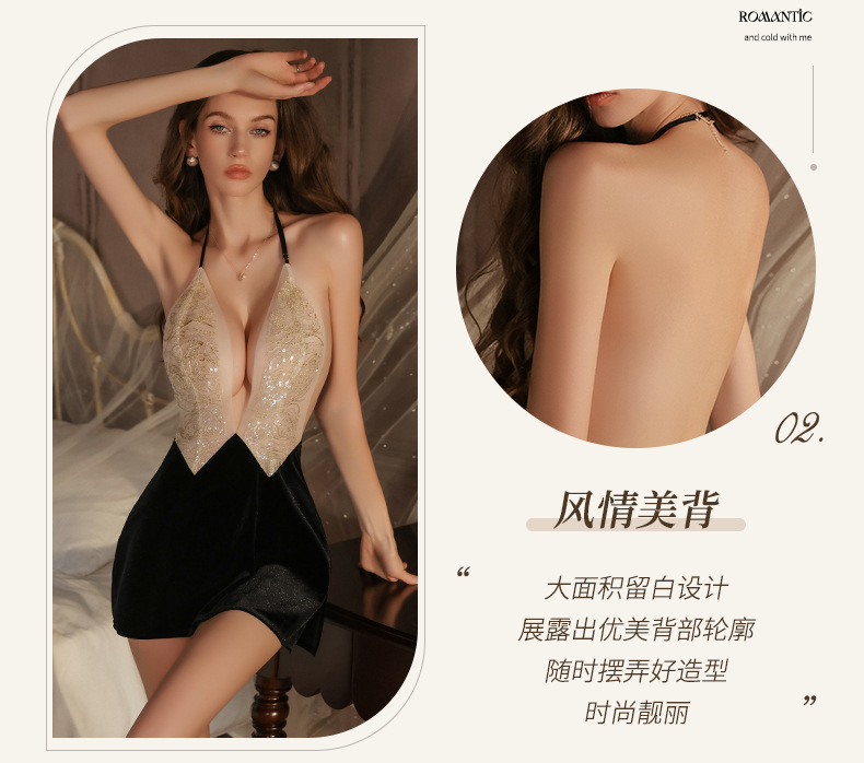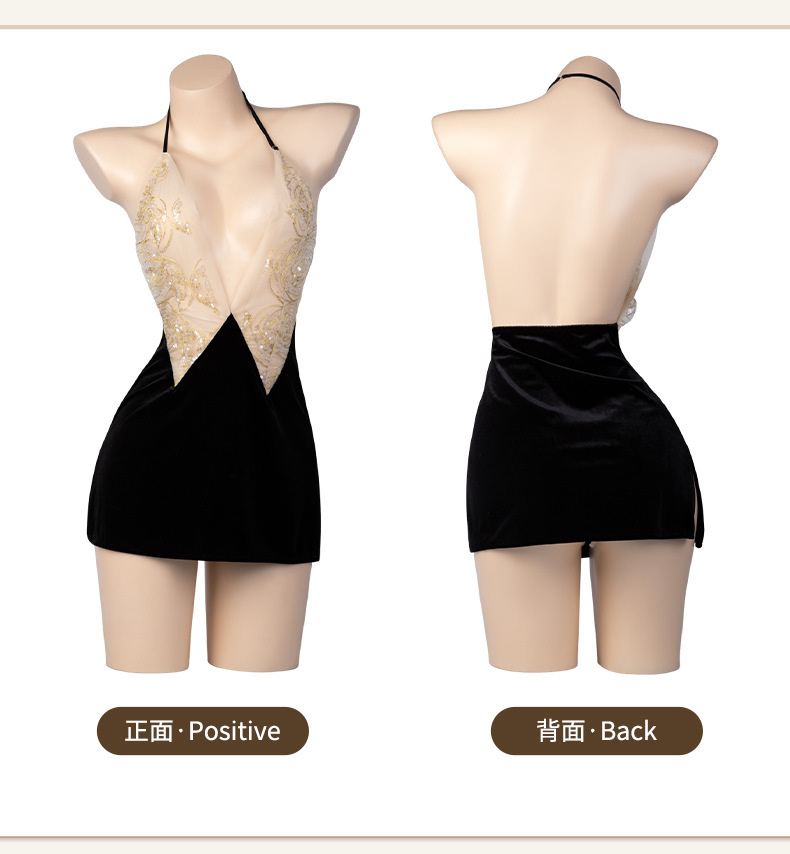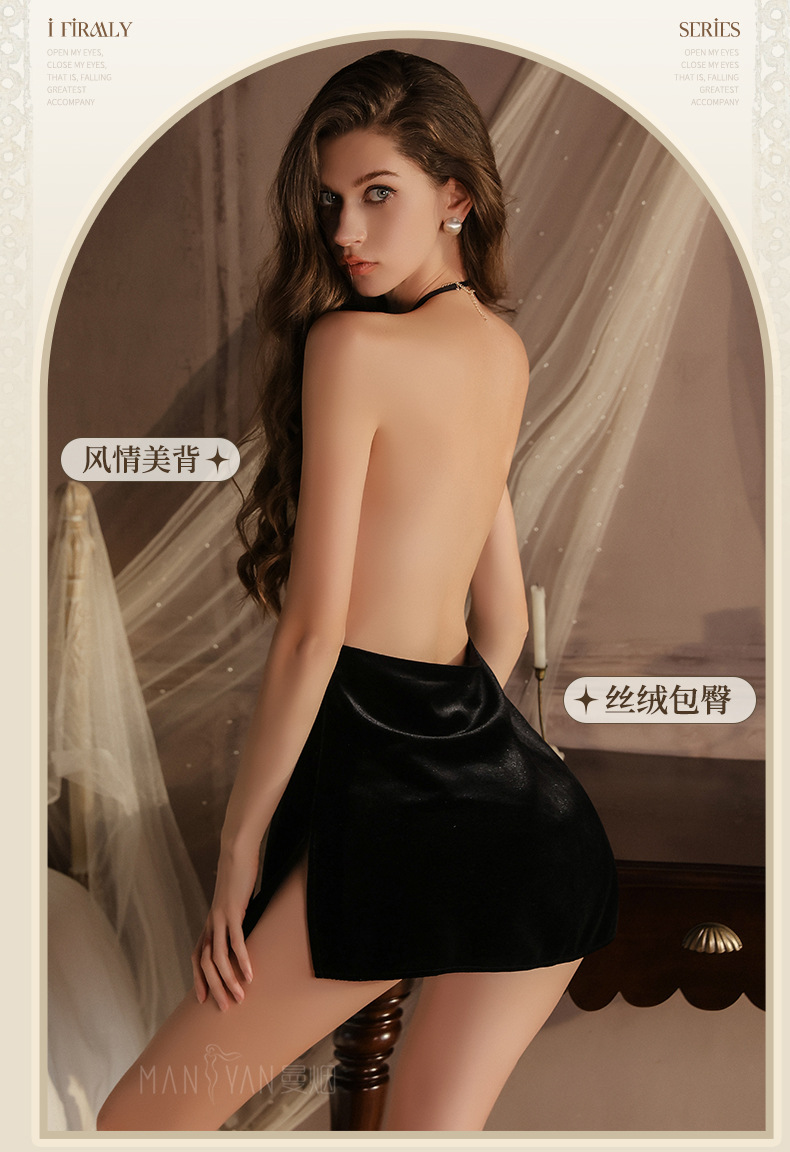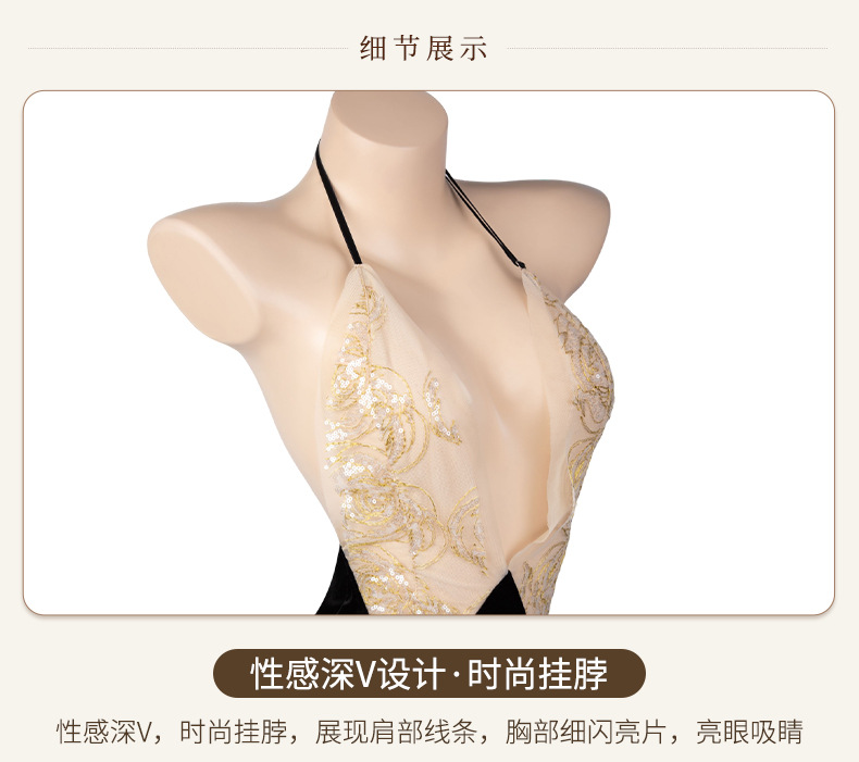 曼烟情趣内衣性感挂脖开衩美背细闪夜店深v连衣包臀短裙100056
