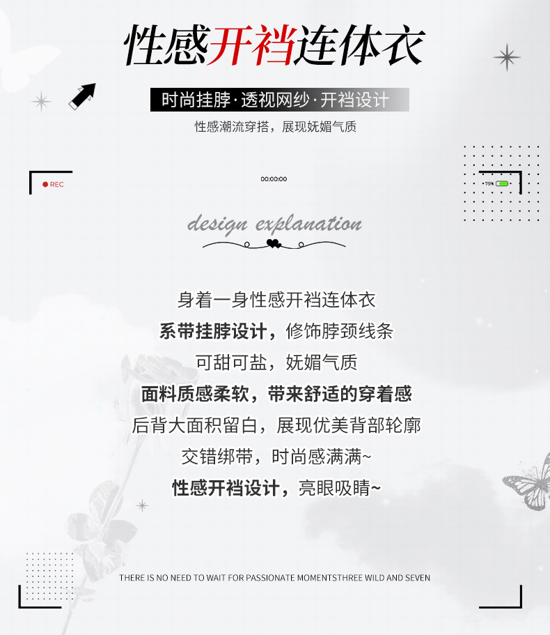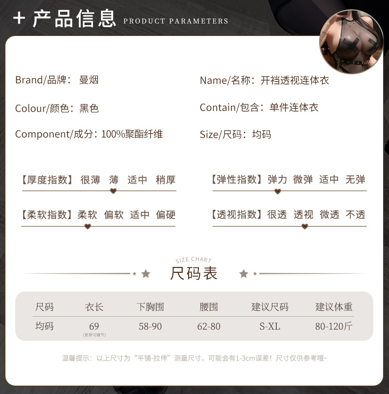 成为第一个“曼烟情趣内衣性感挂脖系带美背时尚柔纱透视开裆连体衣9096” 的评价者