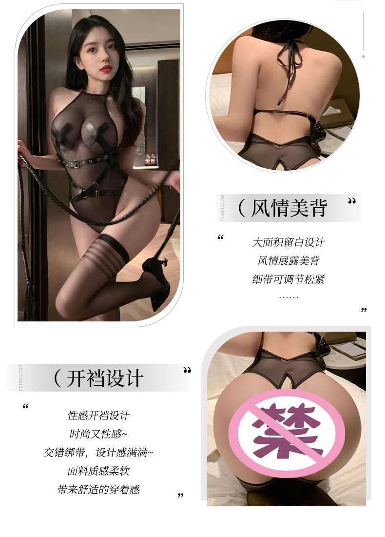 曼烟情趣内衣性感挂脖系带美背时尚柔纱透视开裆连体衣9096 数量