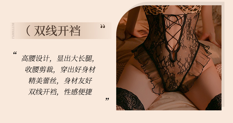 曼烟情趣内衣性感挂脖花边蕾丝系带透视露背豹纹开档连体衣9282 数量