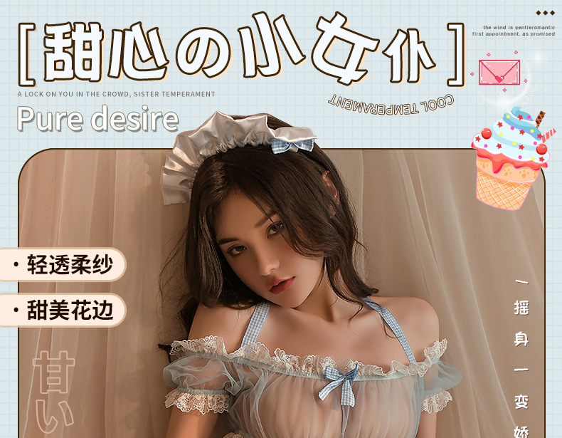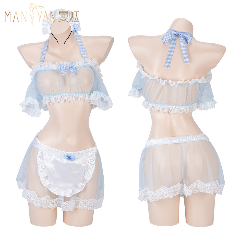 曼烟情趣内衣性感挂脖透视分体女仆装制服套装一件代发8603