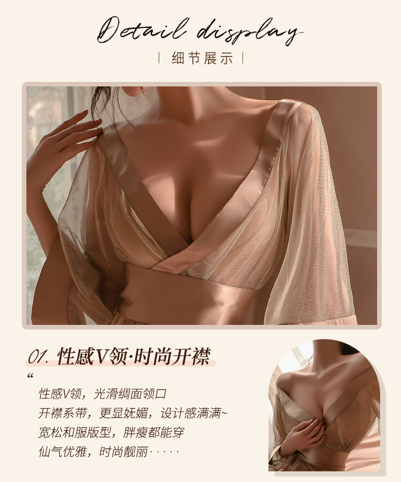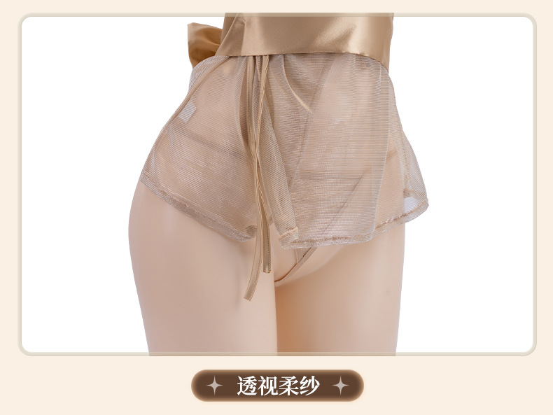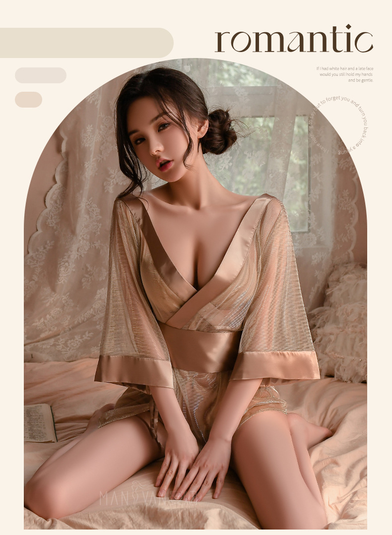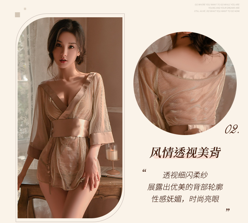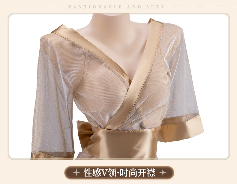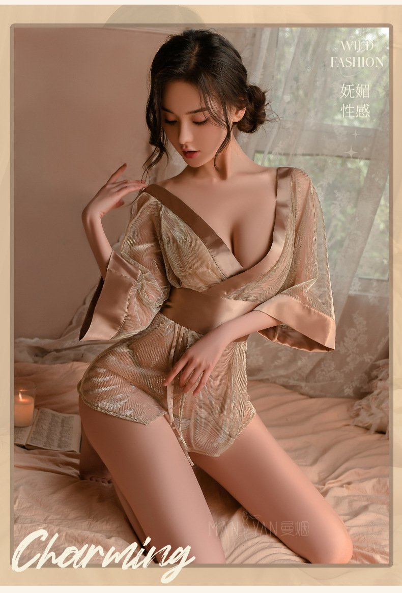 曼烟情趣内衣性感细闪透视薄纱深v开襟日系和服外罩衫制服9685