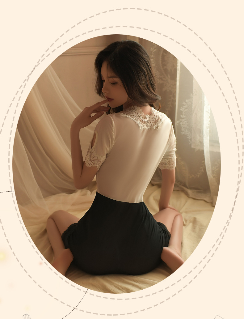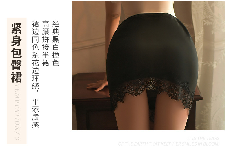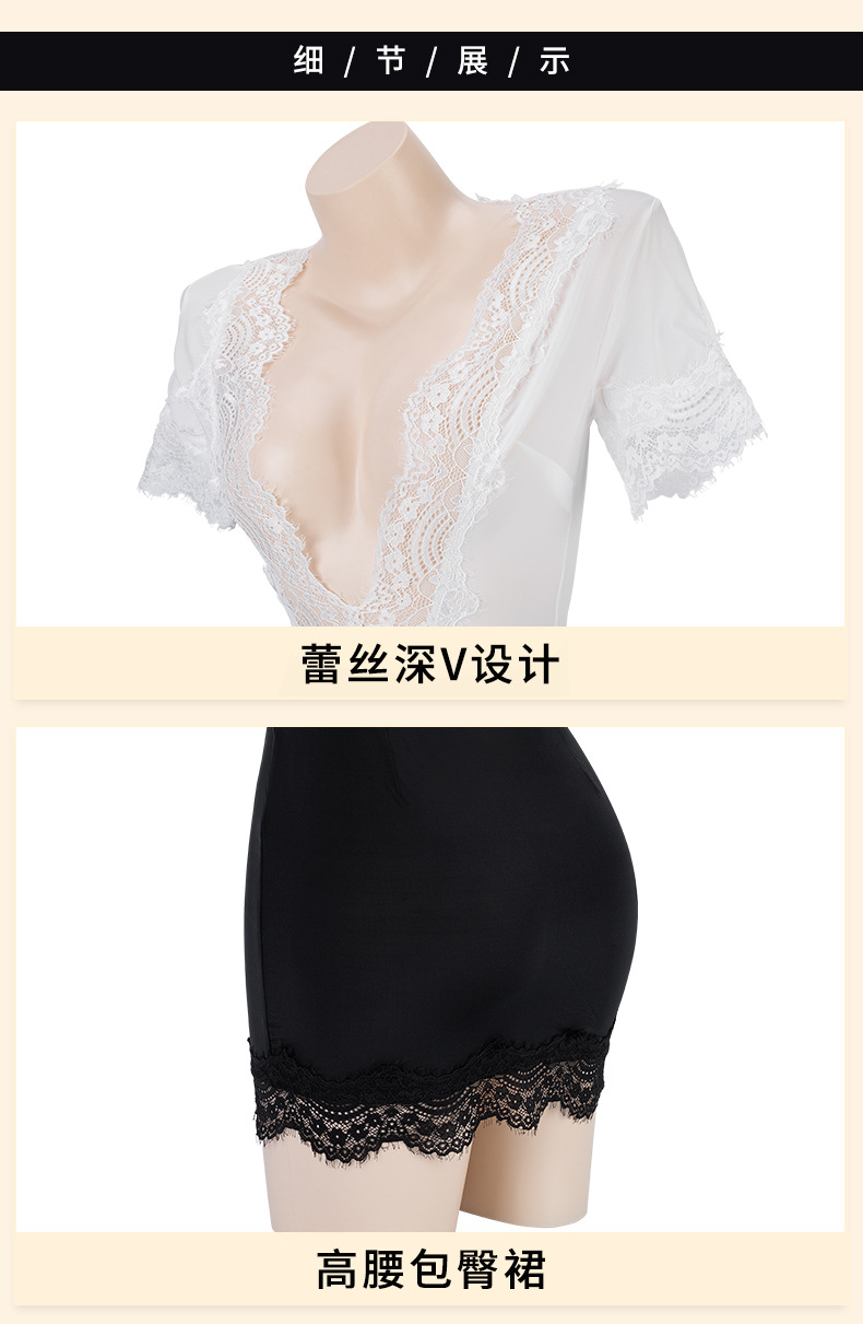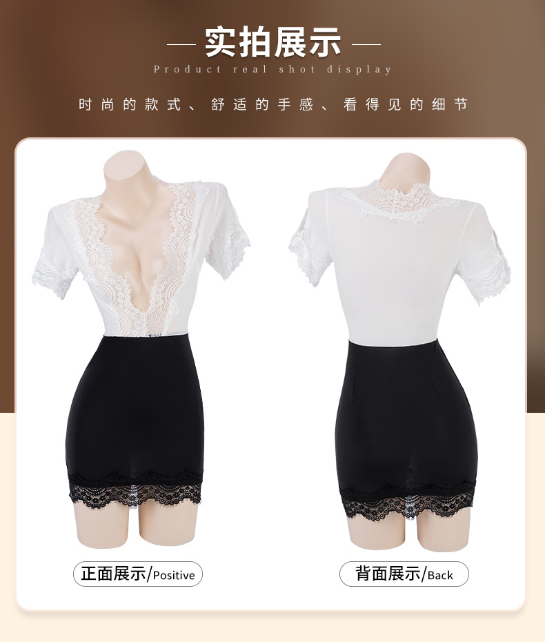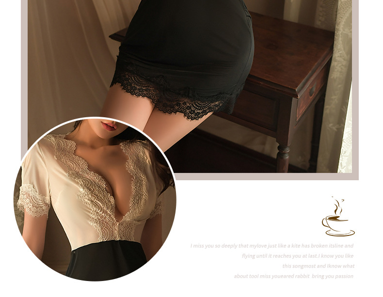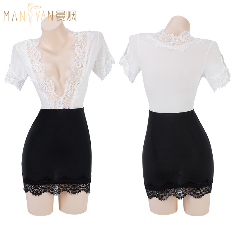 曼烟情趣内衣性感蕾丝透视深v秘书包臀裙制服套装代发8568