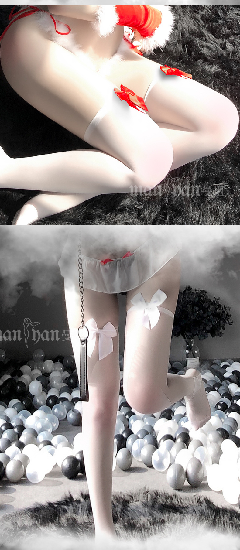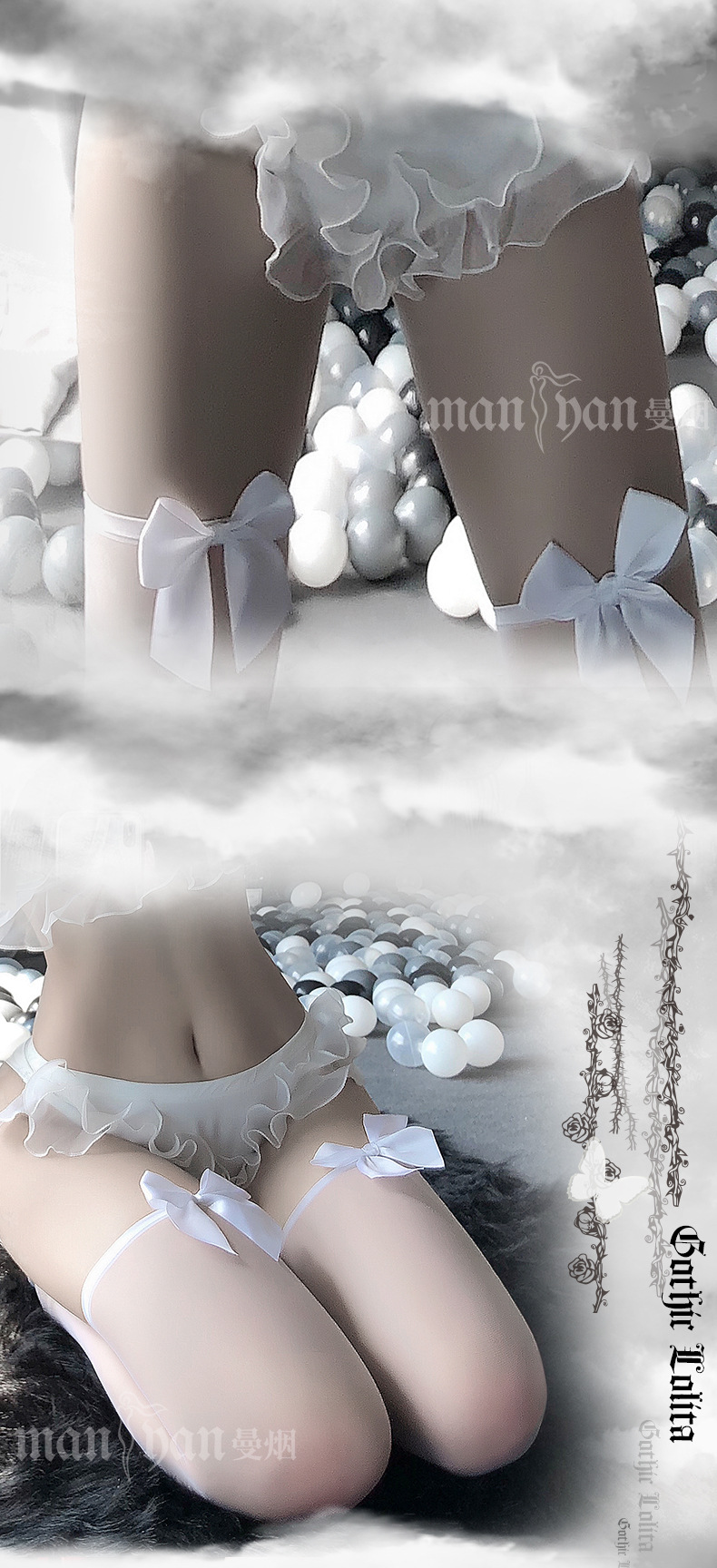 曼烟情趣内衣性感蝴蝶结宽边透视美腿袜长筒袜情趣丝袜7122 数量