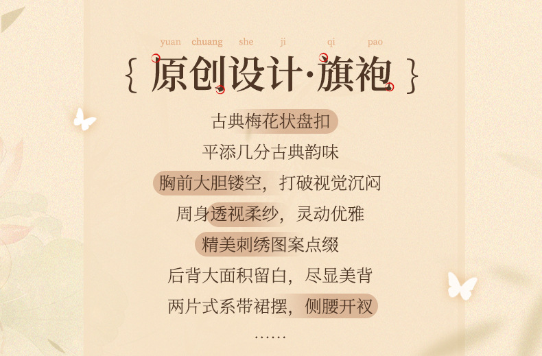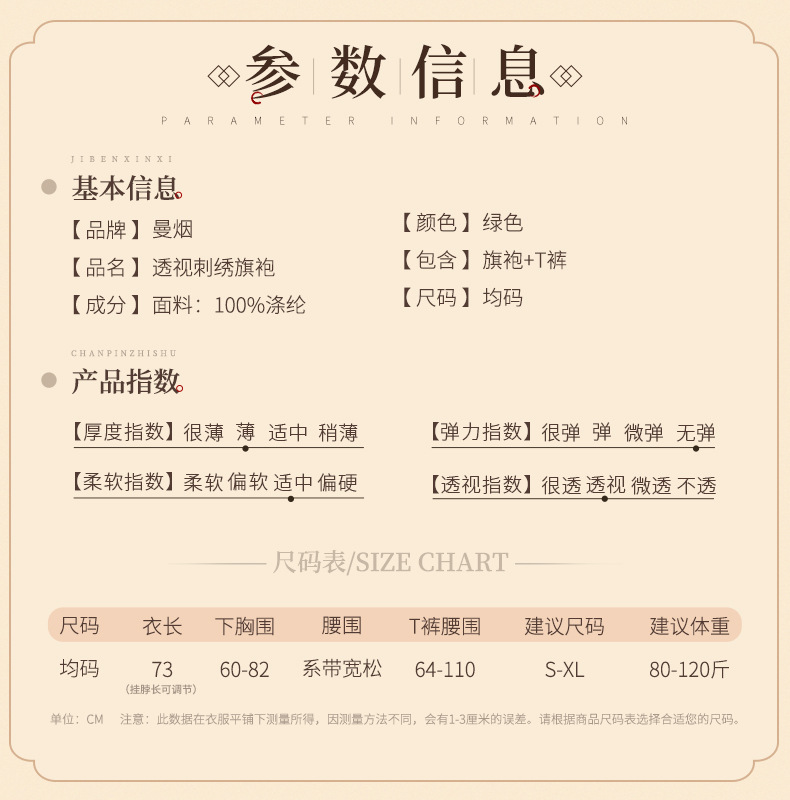 成为第一个“曼烟情趣内衣性感镂空挂脖刺绣透视绑带露背复古盘扣旗袍套装9060” 的评价者