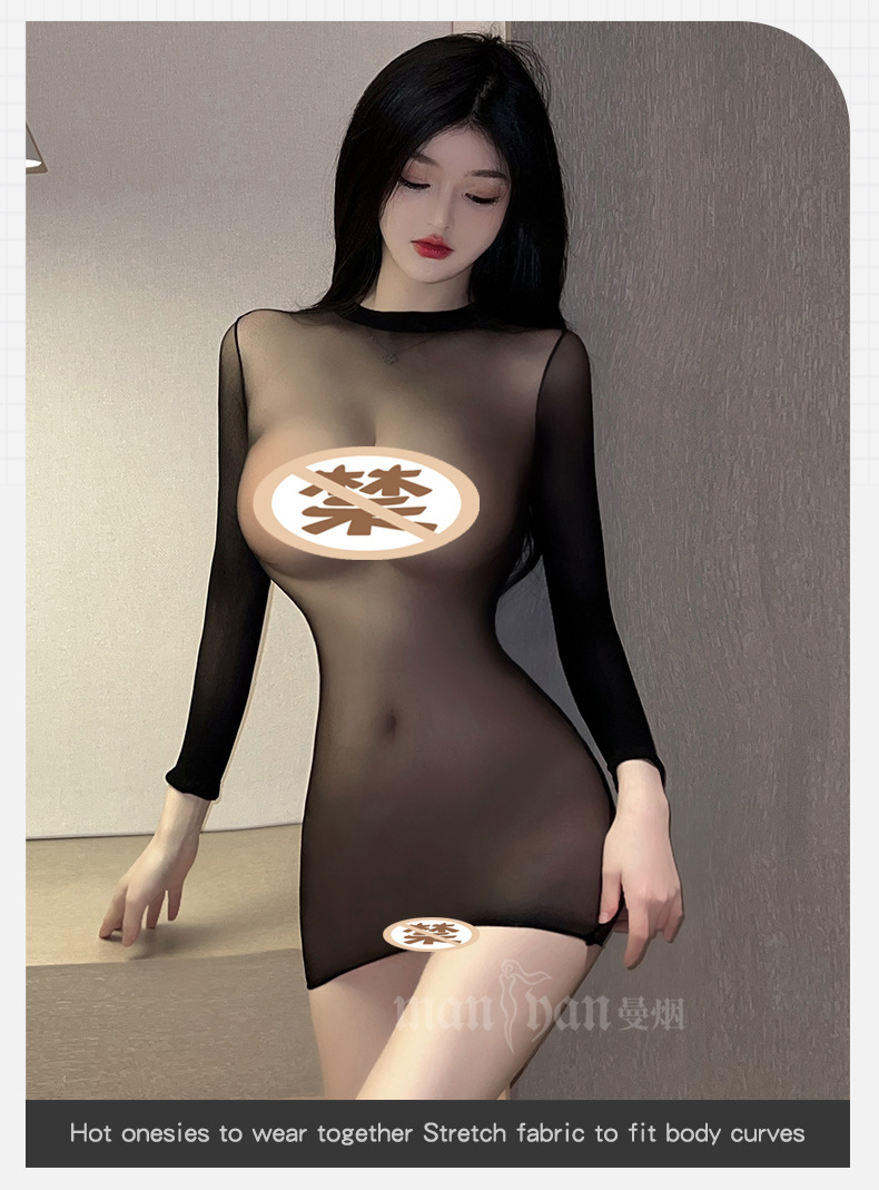 曼烟情趣内衣性感长袖透视隐身衣包臀网衣情趣丝袜一件代发7312