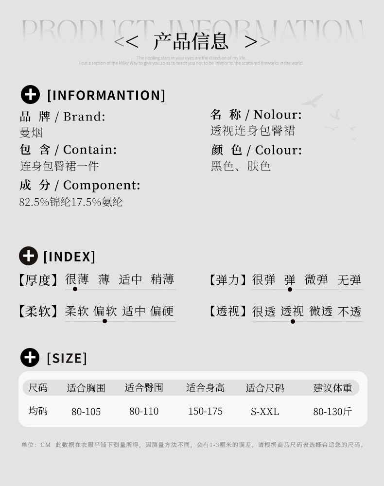 成为第一个“曼烟情趣内衣性感长袖透视隐身衣包臀网衣情趣丝袜一件代发7312” 的评价者