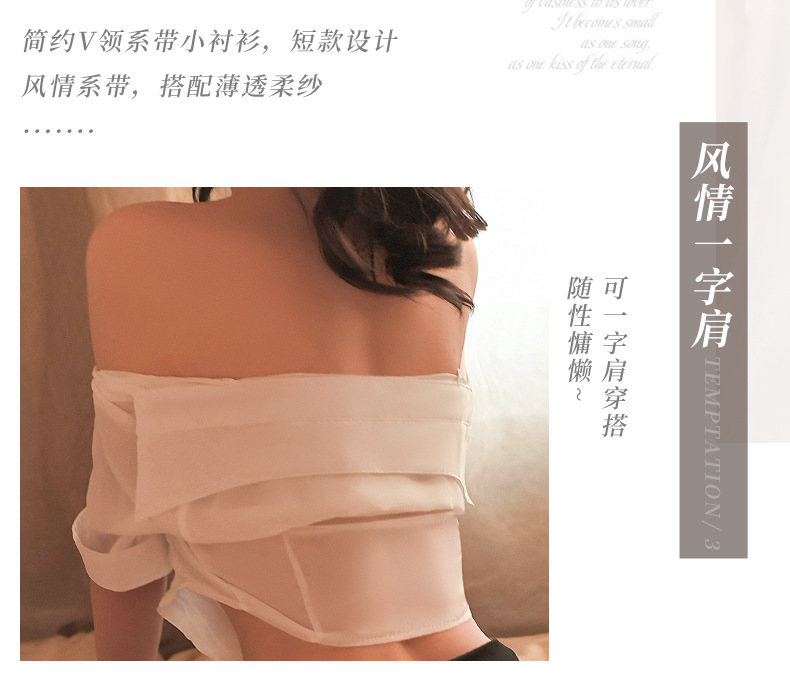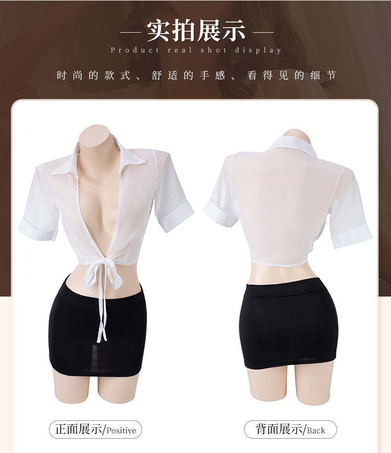 曼烟情趣内衣性感ol秘书教师制服套装衬衫系带包臀紧身裙分体1923