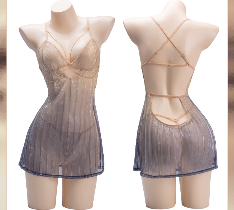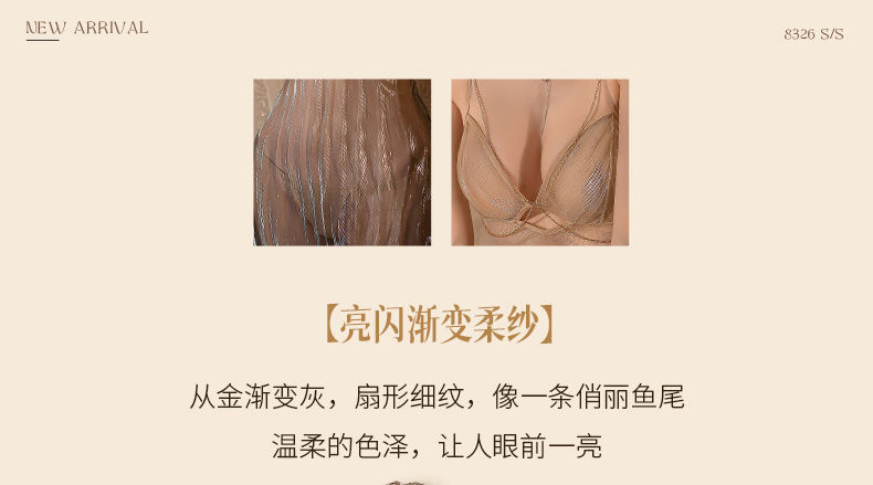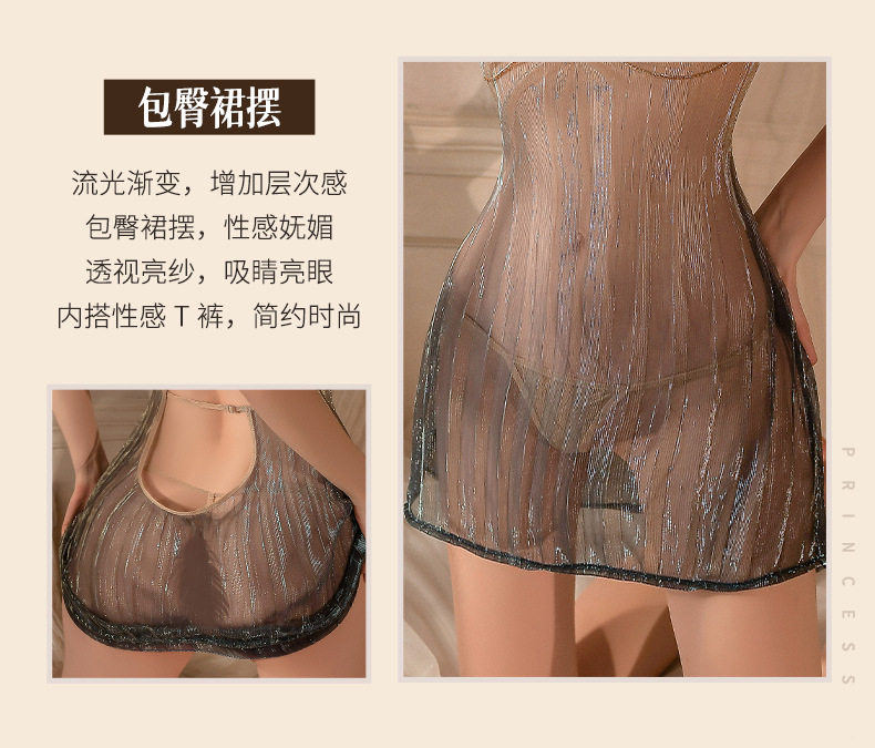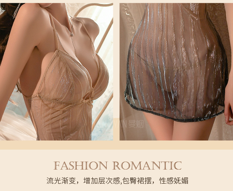 曼烟情趣内衣流萤扇纹细闪渐变网纱裙透视夜店包臀睡裙9514