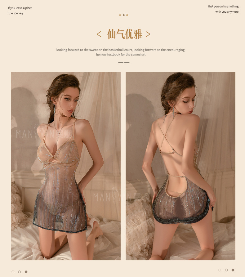 成为第一个“曼烟情趣内衣流萤扇纹细闪渐变网纱裙透视夜店包臀睡裙9514” 的评价者