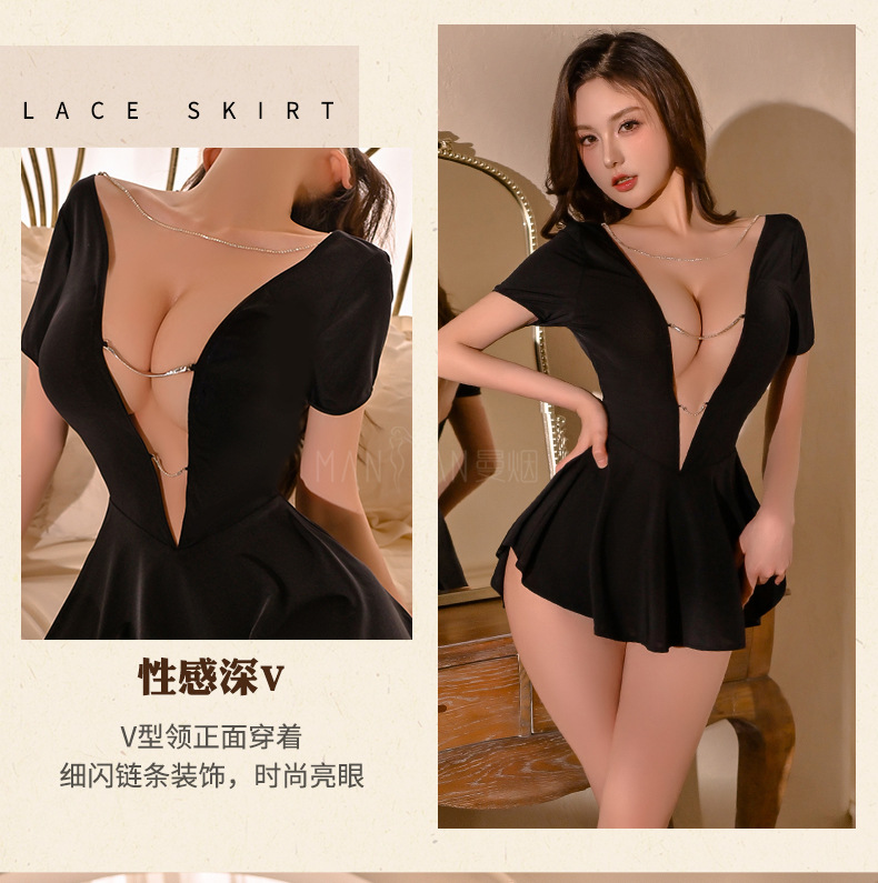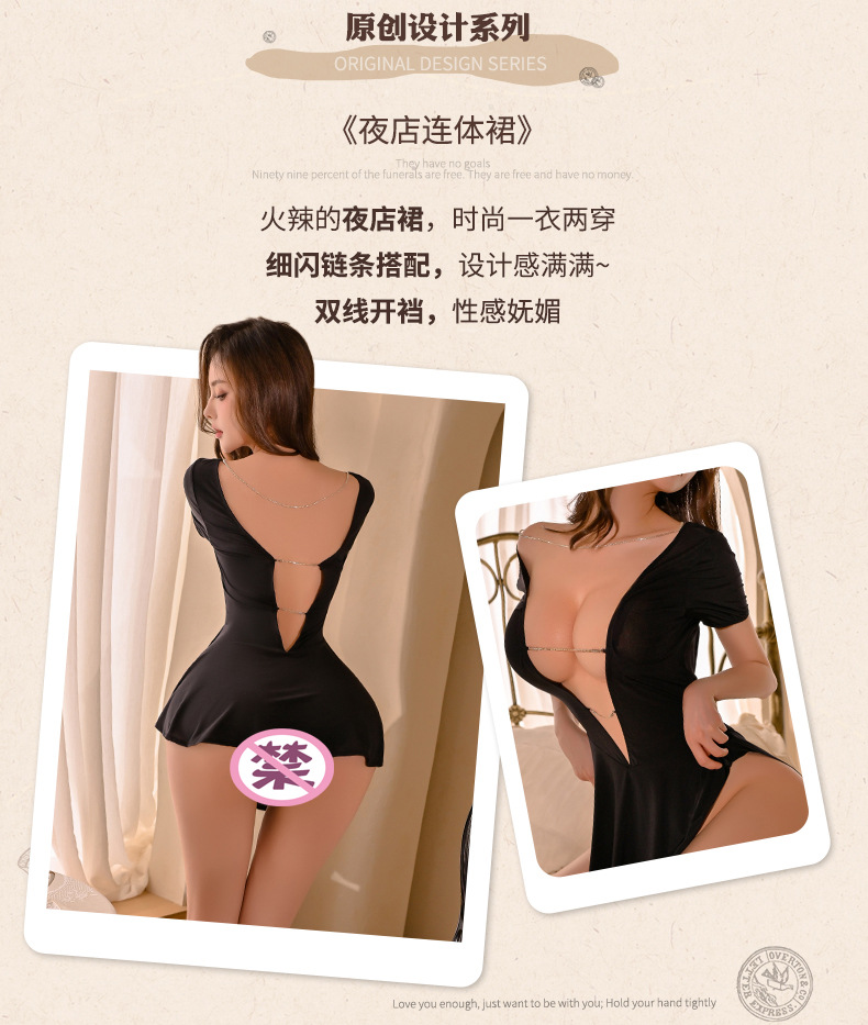 曼烟情趣内衣深v美背伞状一衣两穿火辣夜店流金睡裙100082