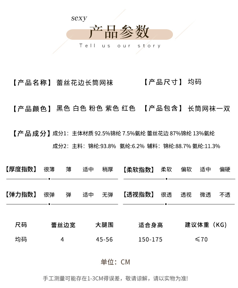 成为第一个“曼烟情趣蕾丝渔网蕾丝花边长筒网袜网眼性感情趣丝袜代发WZ7005” 的评价者